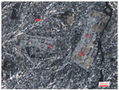 金屬礦物黃鐵礦呈半自形晶粒狀 |